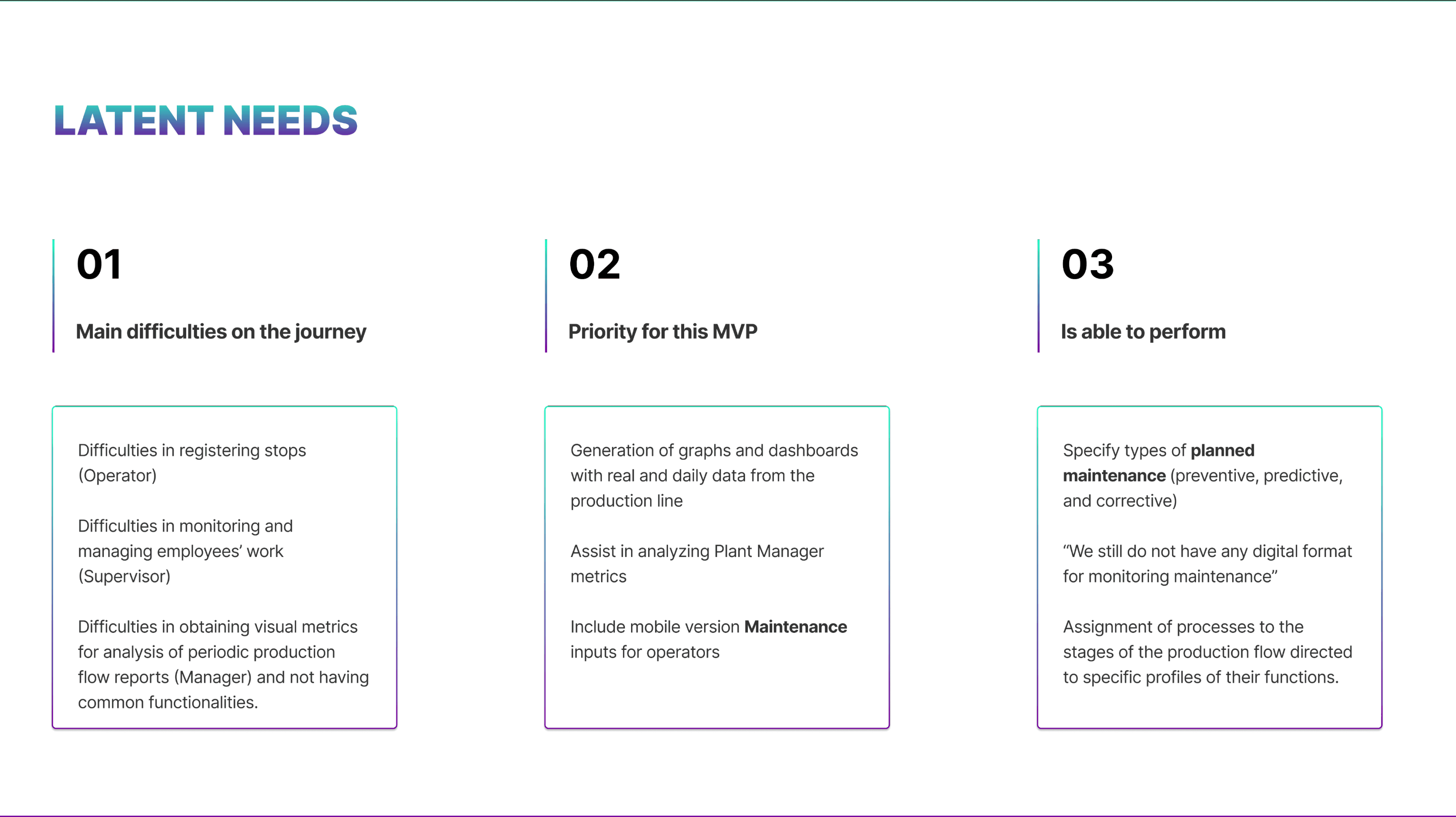 At Maltic, we had the challenge of creating a product from scratch in 6 months, to carry out research and discover problems that could be solvedwith an Artificial Intelligence chatbot and assist the industrial sector in technological development. Functionality studies were carried out considering a project partner, MInA-SENAI, an industry productivity monitoring platform.
